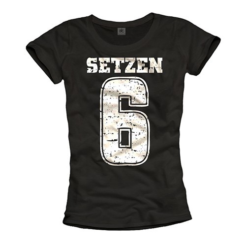 COOL COLLEGE WOMENS T-SHIRT WHIT CRAZY NUMBER 6 PRINT - TOP GIRL TEE BLACK S M L