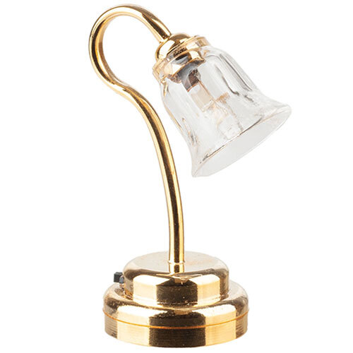 Lámpara de mesa miniatura de pantalla transparente para casa de muñecas, lámpara de batería-