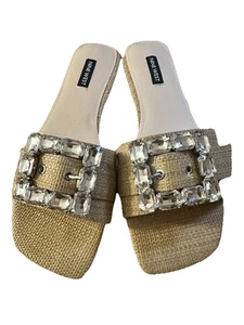 Sandalia plana sin cordones NINE WEST para mujer tejida mate adornada bronceada dorada talla 8,5-