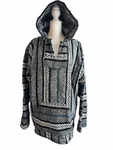BAJA JOE Men’s Hoodie Black/Teal Skater Surfer Dude Rasta Sz Medium