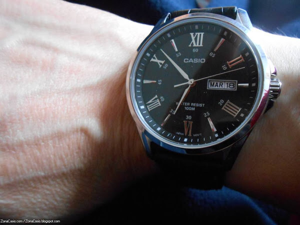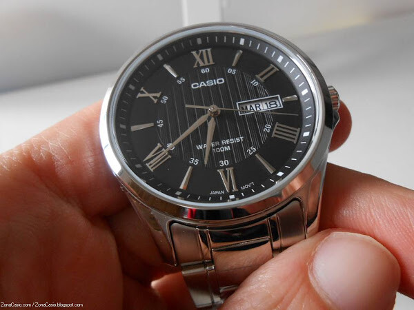 Reloj informal Casio MTP-1384D-1A esfera negra analógico número romano cuarzo para hombre-