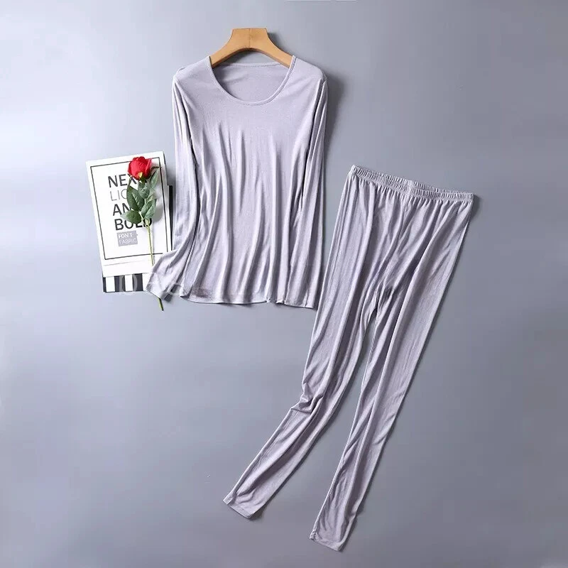 Conjunto de ropa interior térmica de seda pura para mujeres conjuntos largos Johns capa base superior e inferior-