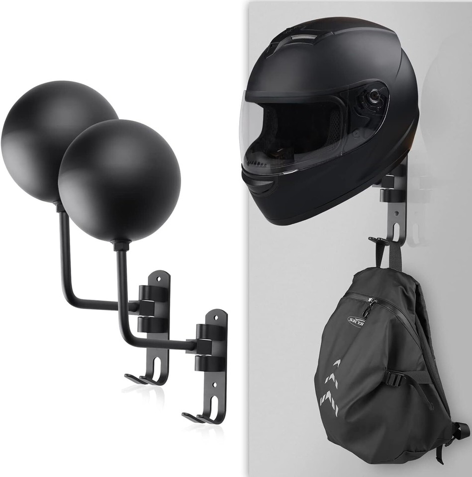 2pack Wall Mount Motorcycle Bike Helmet Rack Holder Hook Hanger Stand Display