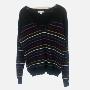 Suéter Pullover Allison Joy Negro Multicolor Rayas Cuello en V Talla M-