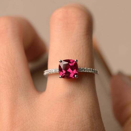 Paquete de anillo octágono rubí creado en laboratorio de plata esterlina 925 3,25 regalo para ella-
