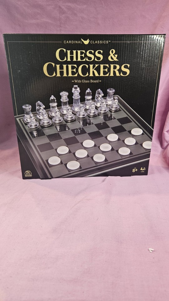 Juego de ajedrez y damas Cardinal Classics con tablero de cristal, completo con instrucciones -