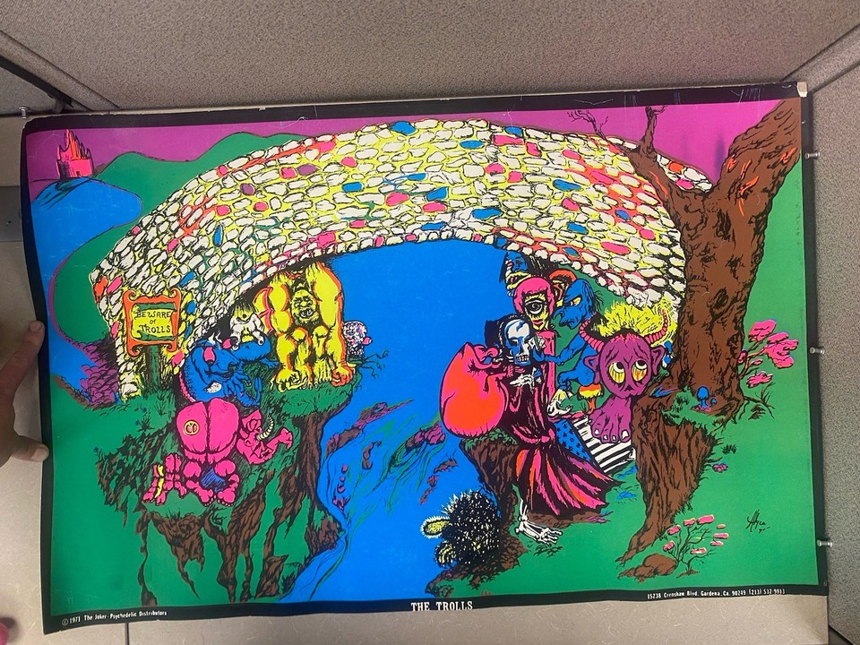 Póster psicodélico vintage Blacklight serigrafía THE TROLLS 1971 Mancave-