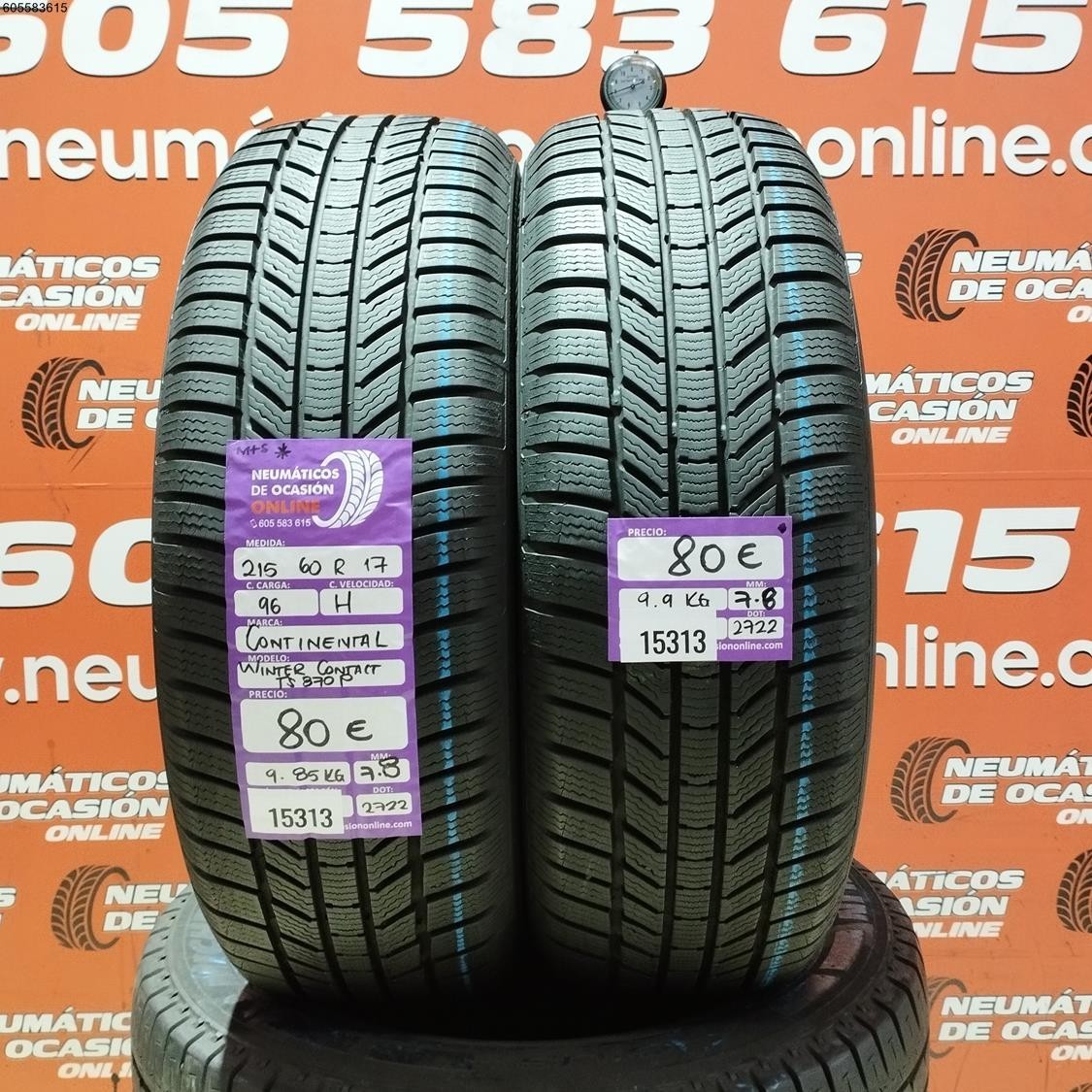 2x 215 60 R17 96H CONTINENTAL WINTER CONTACT 7.8/7.8MM REF. 15313