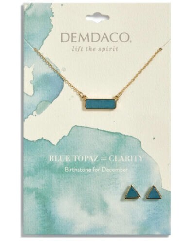 Juego de collar y pendientes de piedra de nacimiento Demdaco - Diciembre - Topacio azul = Claridad-