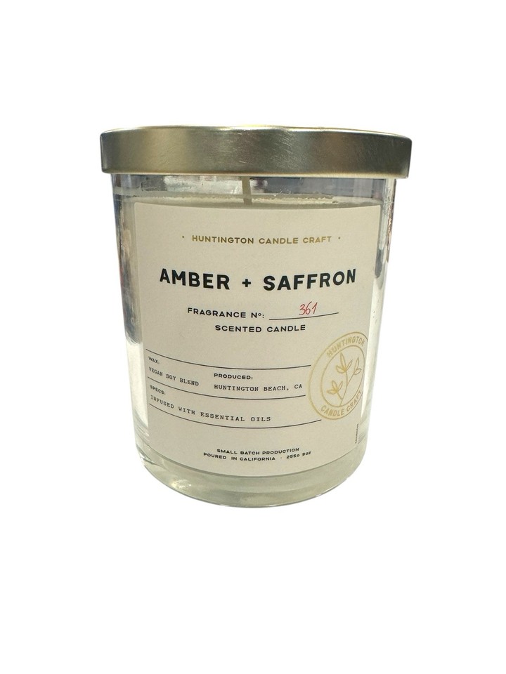 Vela de mezcla de cera de soja vegana ámbar y azafrán Leoben Co., 9 oz-