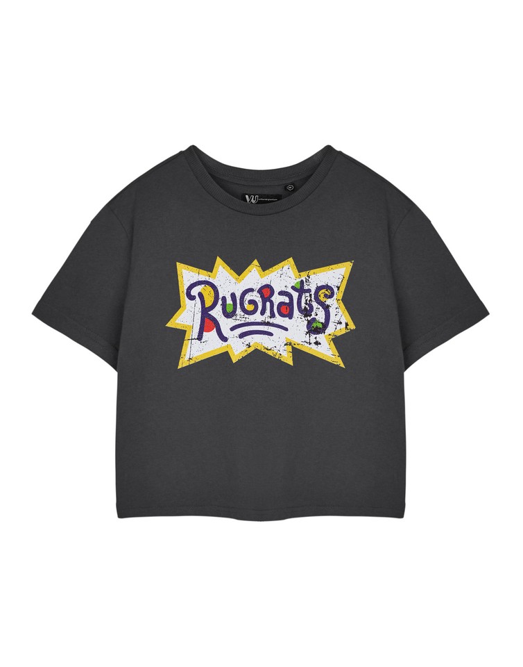 Rugrats Grey Retro Logo Crop Cropped Short Sleeved T-Shirt Womens