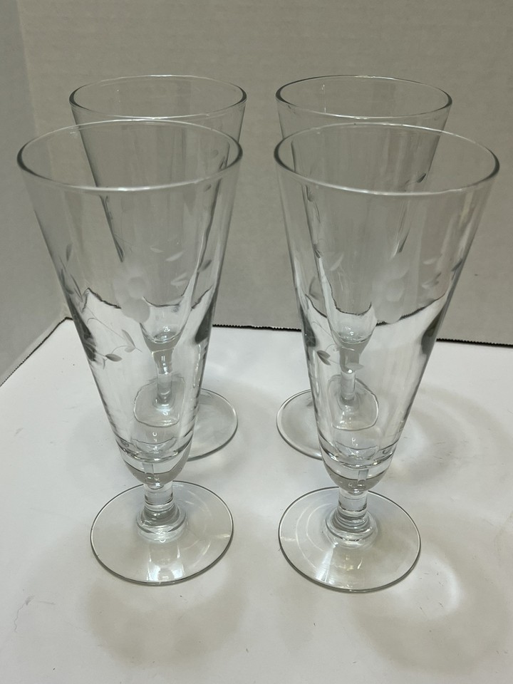 Juego de 4 vasos pilsner de cristal vintage Princess House Heritage #442 cortados a mano -