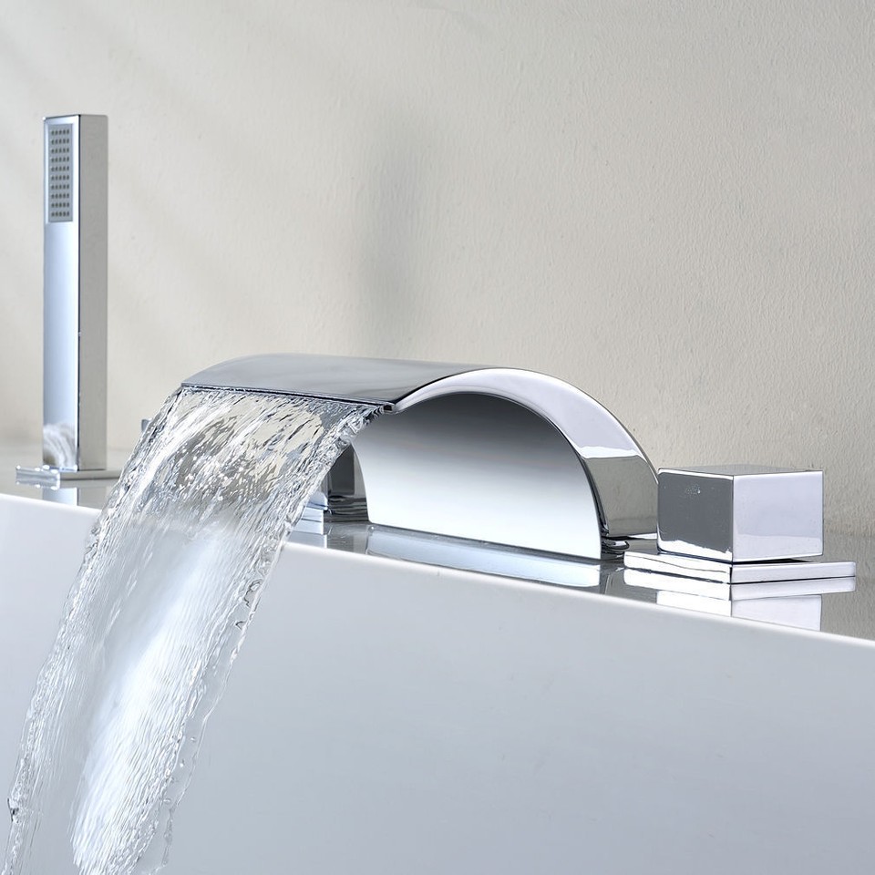 Mezclador de lavabo cromado para baño 5 piezas grifo de latón cascada juegos de ducha de mano-
