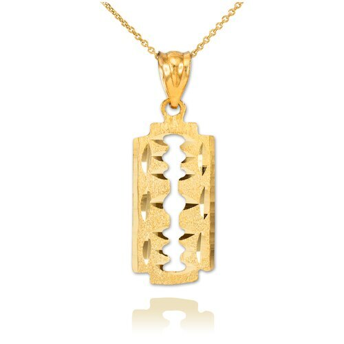 Collar colgante hoja de afeitar de oro real amarillo macizo de 10K peluquería -