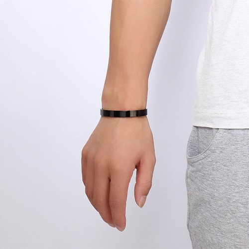 - Pulseras Brazalete negros de acero inoxidable para hombre,
