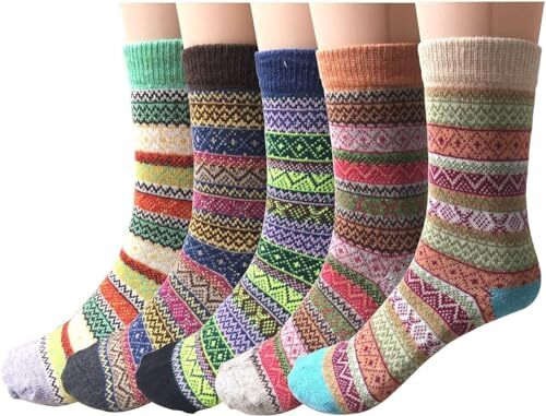 5 pares de calcetines de lana para mujer vintage suaves talla única beige azul naranja marrón verde-