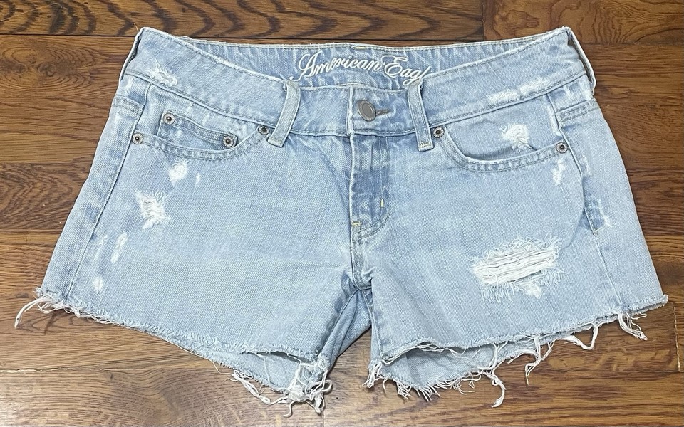 Pantalones Cortos American Eagle AE Mujer’s 2 Lavado Ligero Azul Envejecido Jean Corte Denim-