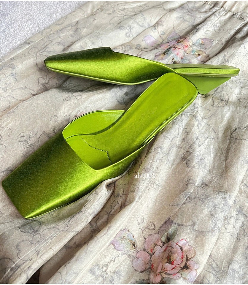 Fashion Womens Square Toe Satin Sandals Summer Mules Slipper Slip on Party Shoes
