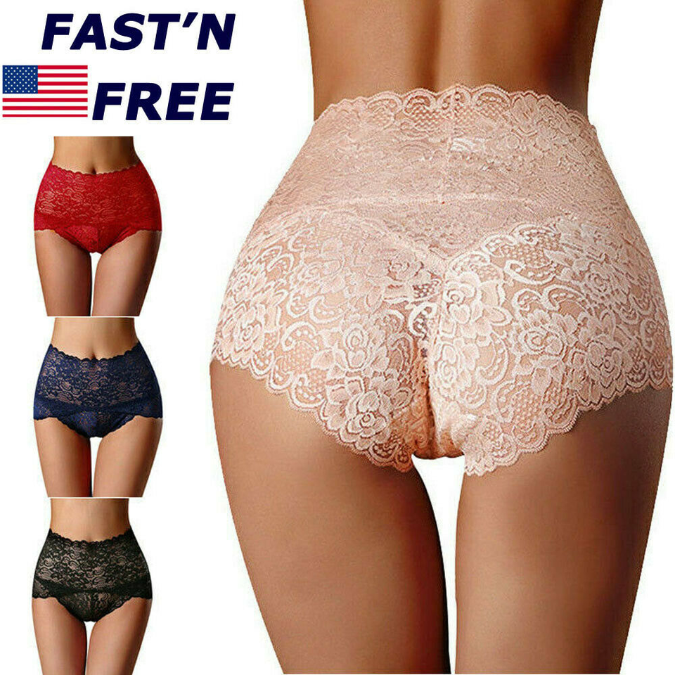 Mujeres Bragas de Encaje 1 Paquete Talla Grande Ropa Interior Cintura Alta Knicker Lencería Femenina-