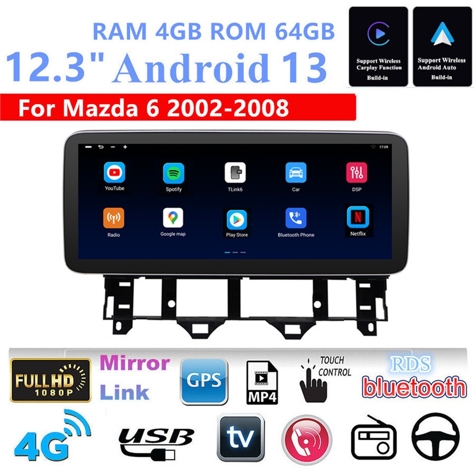 Radio estéreo para automóvil 12,3"" Android 13 4+64 GB navegación GPS para 02-08 Mazda 6 con Carplay-