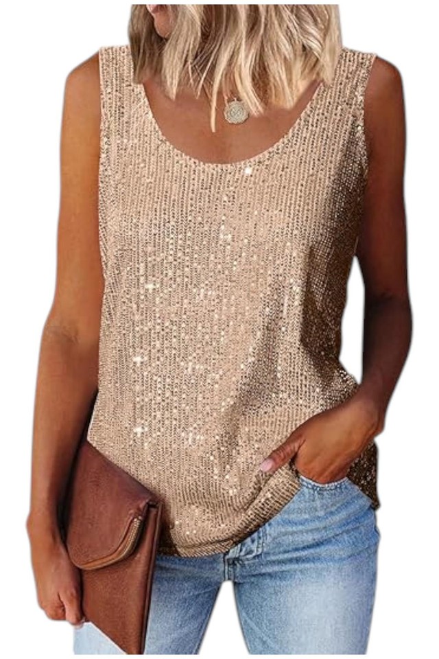 Camiseta sin mangas Anthony de lentejuelas champán para mujer-