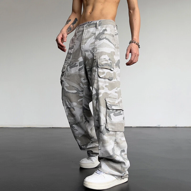 Hombres Pantalones Carga Camuflaje Exterior Pantalones Sueltos Hip Hop Bolsillo Ropa de Calle -