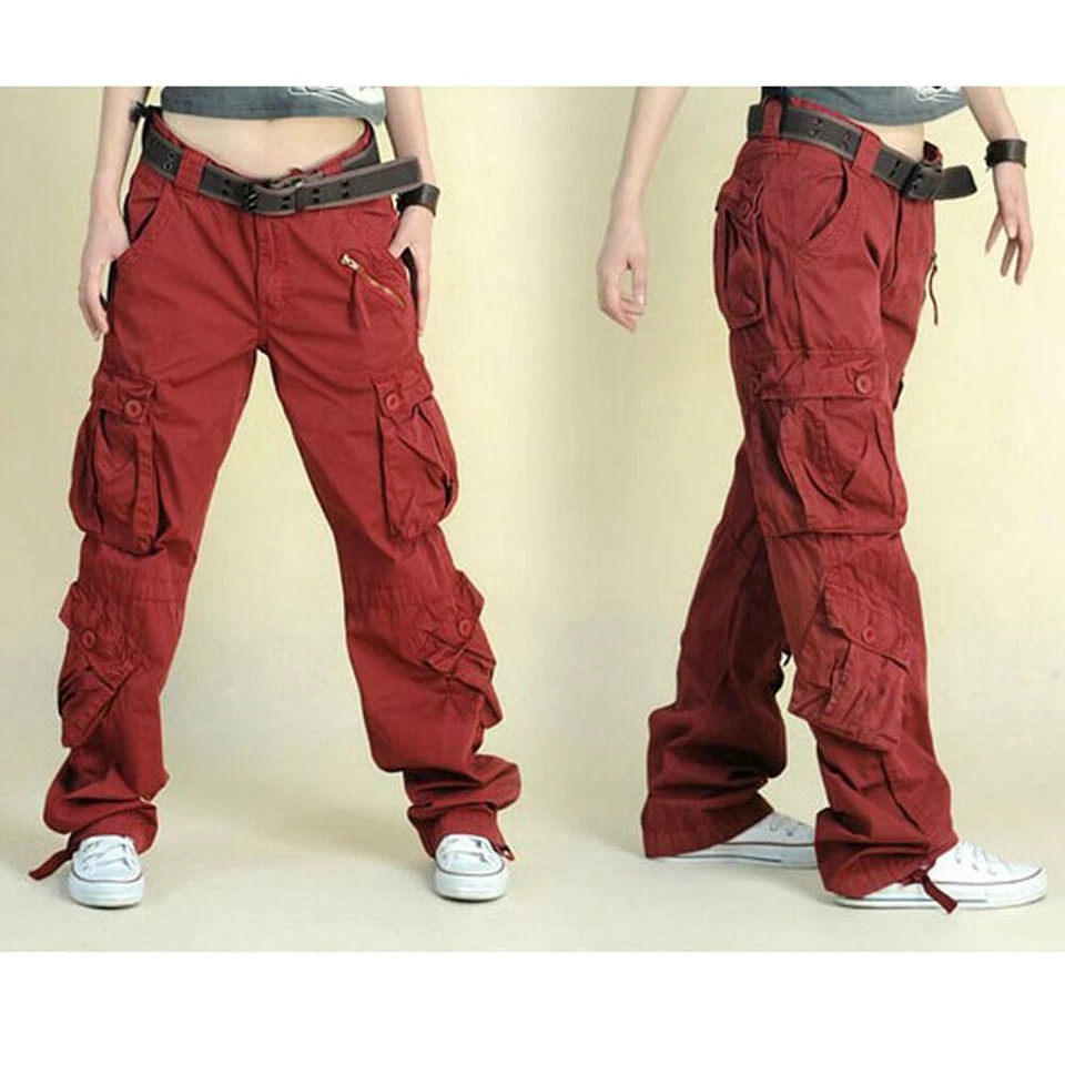 Pantalones de Hip Hop de Carga para Mujer Pantalones Sueltos Bolsillo Exterior Calce Ajustado -