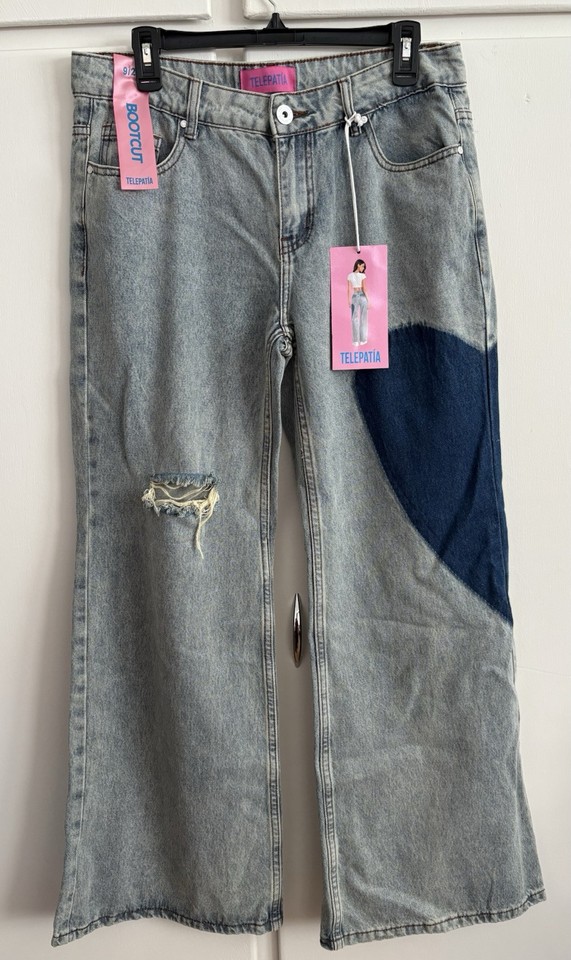 Pantalones de mezclilla desgastados Bootcut talla 9/29 para jóvenes nuevos con etiquetas con corazón azul oscuro de Telepatia-