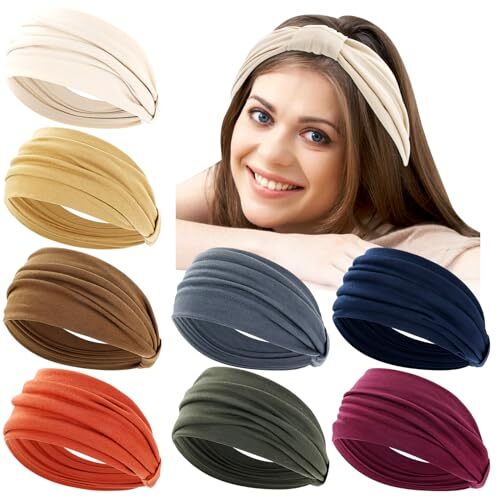 Diademas anchas boho elásticas suaves lisas de 8 piezas para correr yoga gimnasio 8 piezas S1-