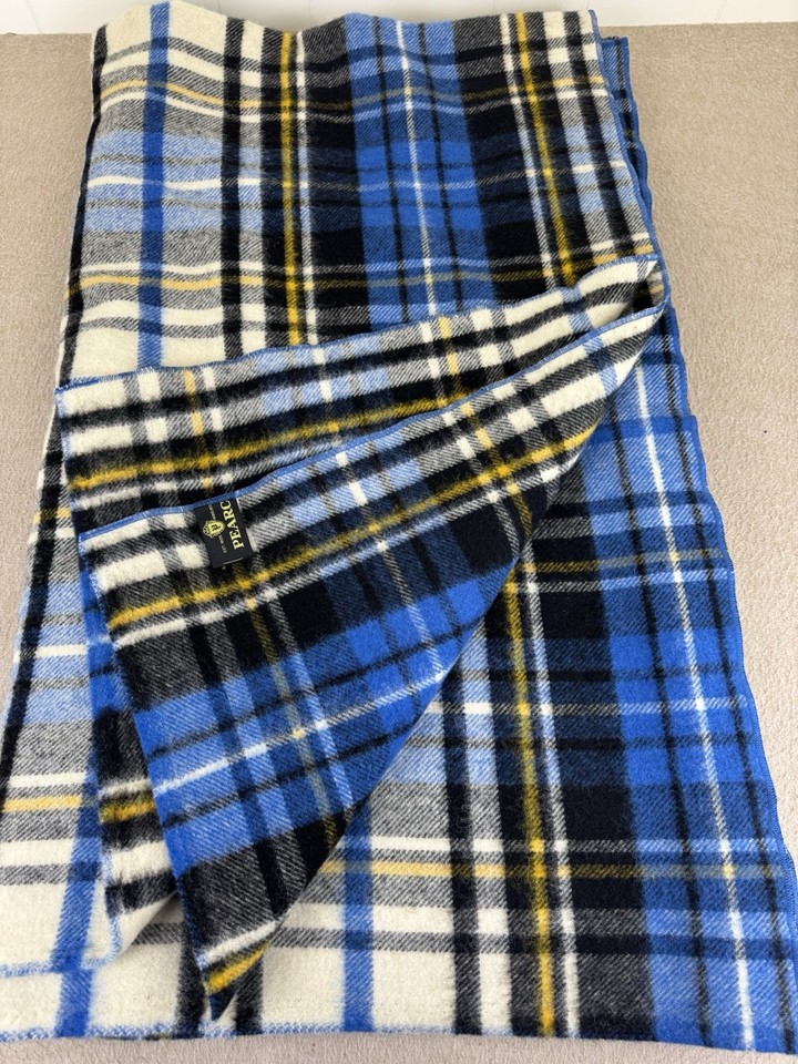 Manta a Cuadros de Lana Pearce Woolrich De Colección EE. UU. Azul Dorado Negro 88"x72"-