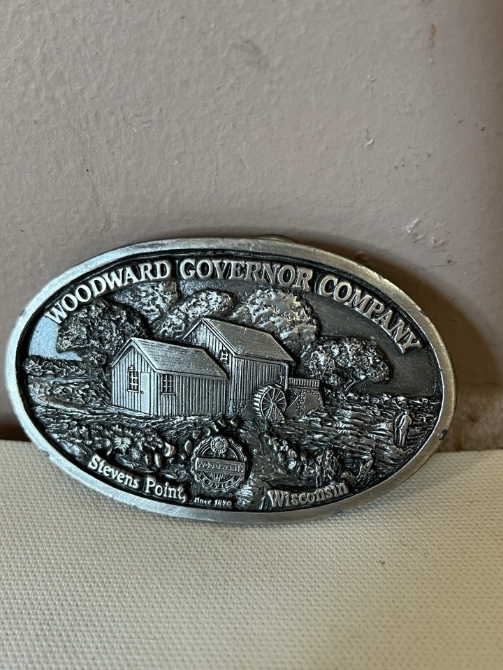 Woodward Governor Company Stevens Point, WI Hebilla de cinturón de metal con forma ovalada-