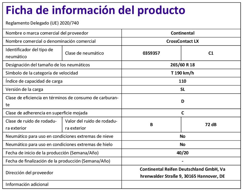 265/60 R18 110T Neumáticos de Verano CONTINENTAL Todoterreno