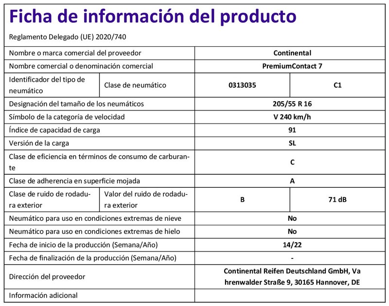 205/55 R16 91V Neumáticos de Verano CONTINENTAL PremiumContact 7