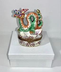 Caja de baratija/recuerdo dragón pintada a mano Limoges Francia Peint Main-