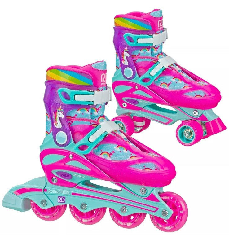 Roller Derby Unicornio 2 en 1 Patines Ajustables y en Línea (Talla 3-6)-