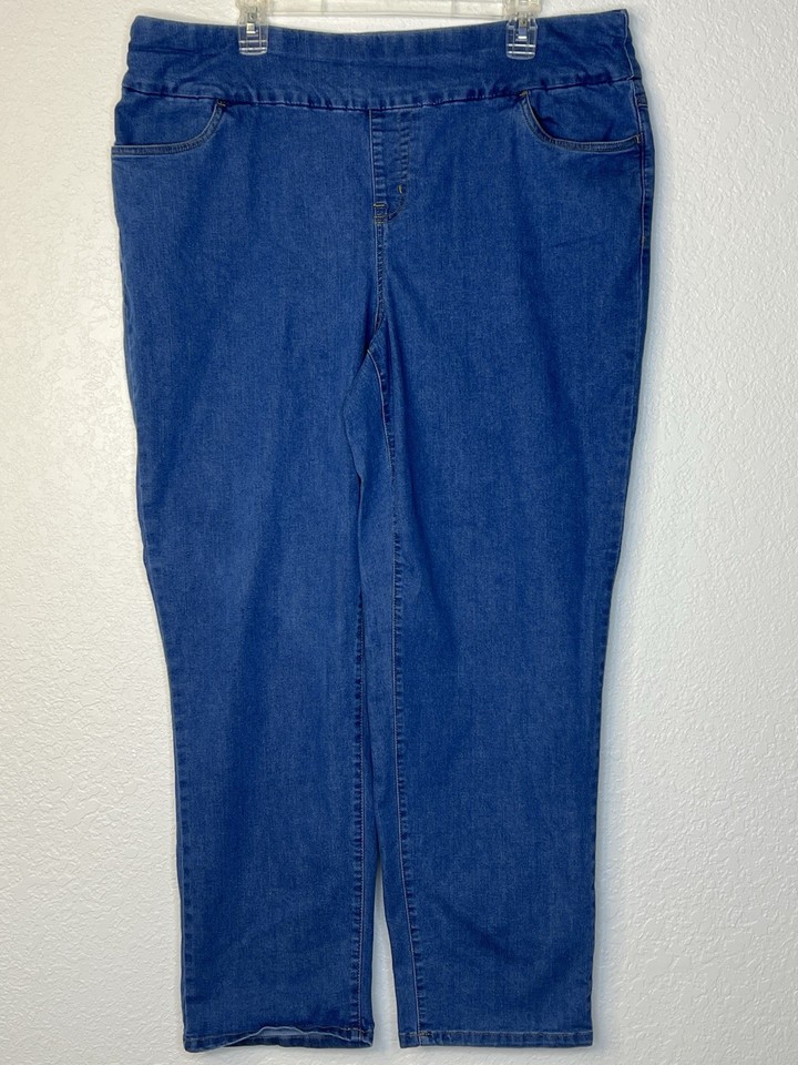 Woman Within Pull On Denim Jeans Sz 20W Light Wash Stretchy Straight Leg