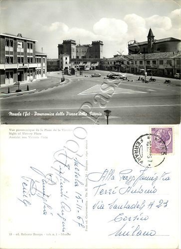 Cartolina di Mesola, municipio e piazza della Vittoria - Ferrara, 1967