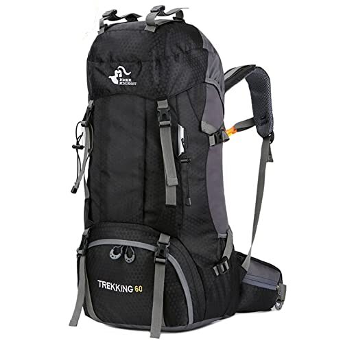 Mochila de Senderismo Ligera Impermeable 60L con Cubierta de Lluvia,Deporte Exterior Negro-