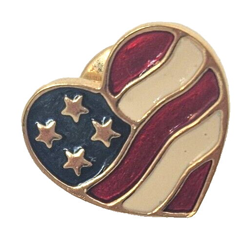 Prendedor de solapa de esmalte patriótico corazón bandera americana Avon/corbata San Valentín .75"-
