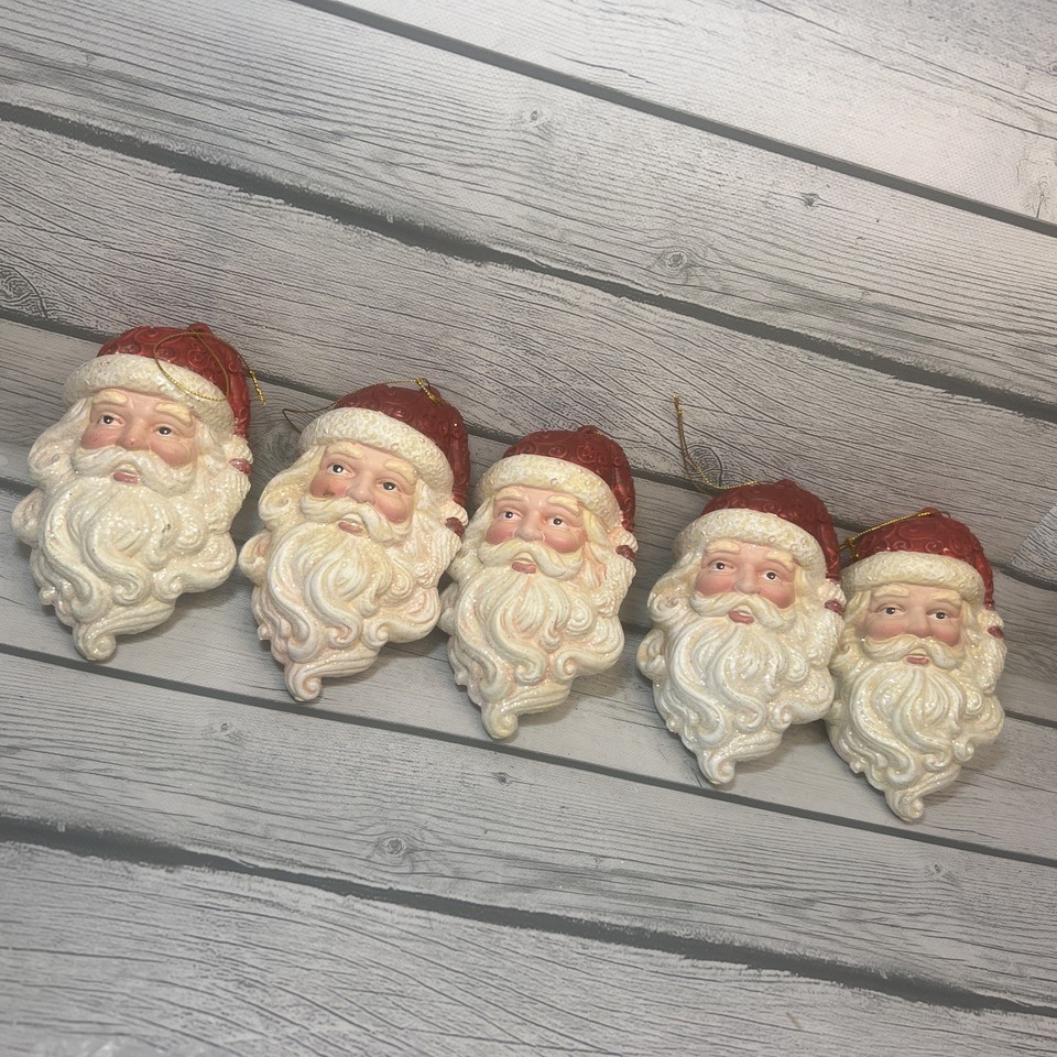 Juego de 5 adornos de cabeza de Papá Noel vintage grandes 3D-