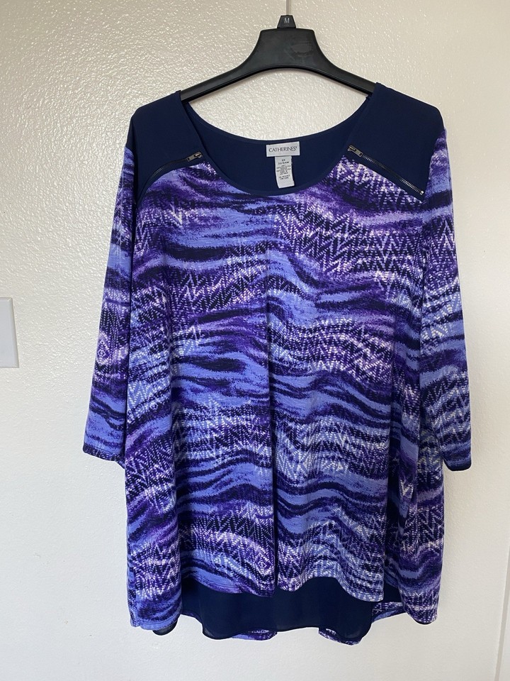 Blusa túnica relajada azul y púrpura Catherines 2X Plus-