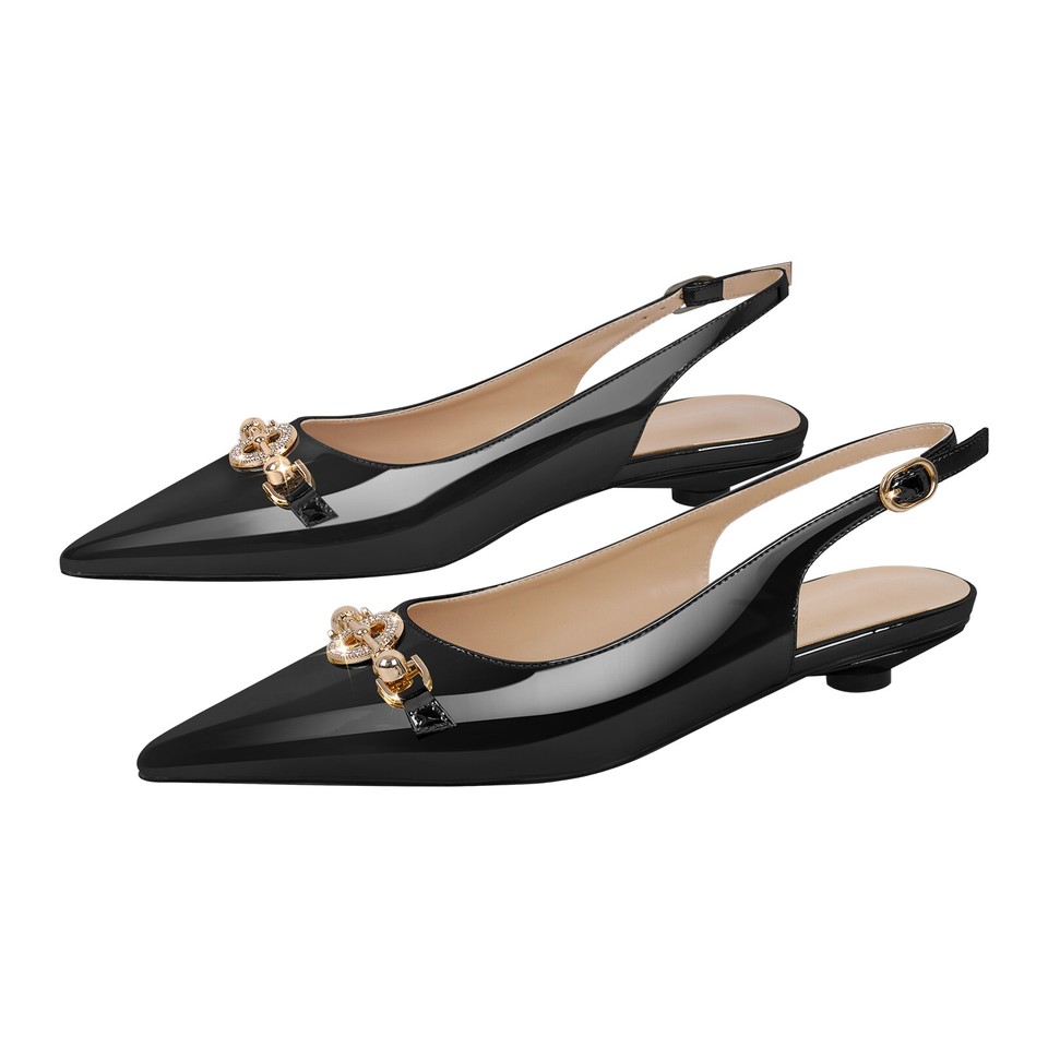 Zapatos de salón con hebilla de tacón de gatito con puntera puntiaguda para mujer-