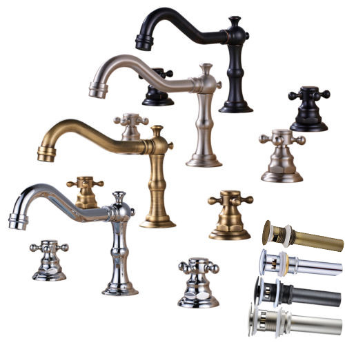 Grifo mezclador de lavabo bañera baño 3 piezas 2 asas cascada grifos de latón-