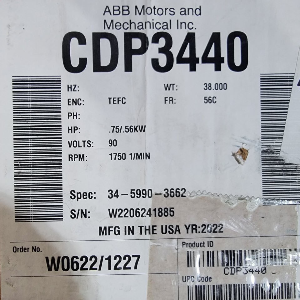 Motor Baldor CDP3440 DC, cuadro 56C, 3/4 HP, 1750 rpm, eje de 5/8", 90 V-