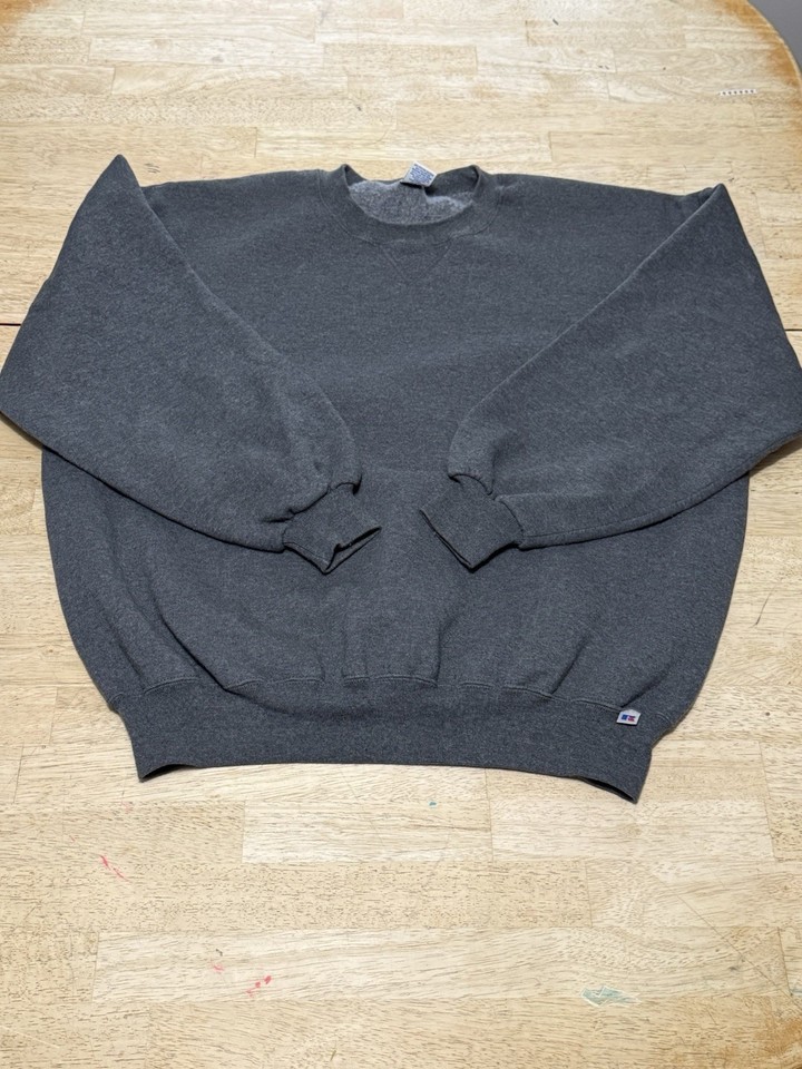 Sudadera Atlética Russell De Colección Cuello Redondo Para Hombre Talla XXL Gris Oscuro Hecha en EE. UU. 90s-