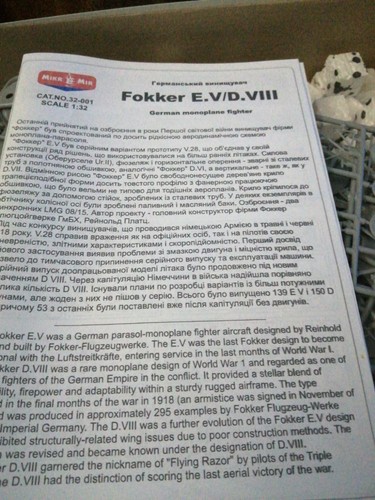 Mikro Mir 32-001 - 1/32 - caza monoplano alemán Fokker E.V/D.VIII-