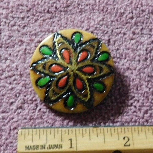 Broche de madera Polonia tallado artesanalmente y pintado a mano variante vintage #2-