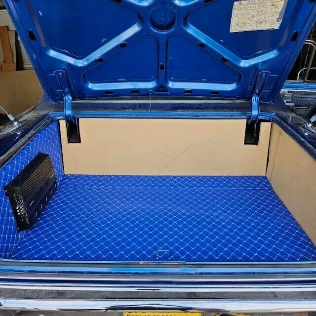 Tela de tapicería de coche de cuero sintético acolchado grano vinilo azul | 55" espuma diamante-