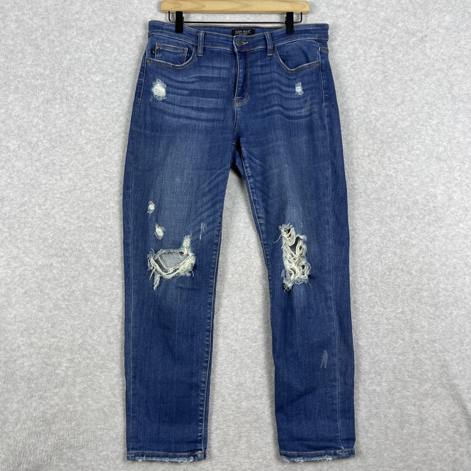 Pantalones de mezclilla Judy Blue para mujer calce ajustado pierna recta talla 11/30 destruidos Normcore vanguardistas-