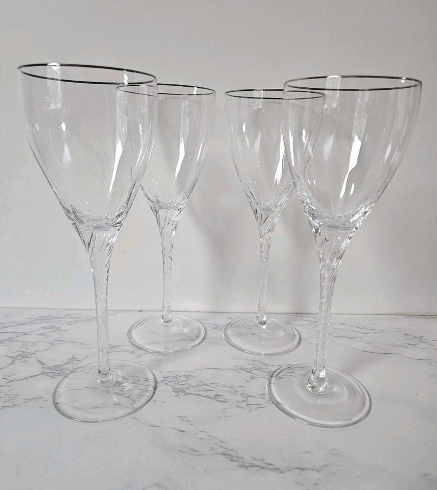 Four Lenox Encore Platinum Crystal Water Goblets Twisted Stem Wine Glasses A16